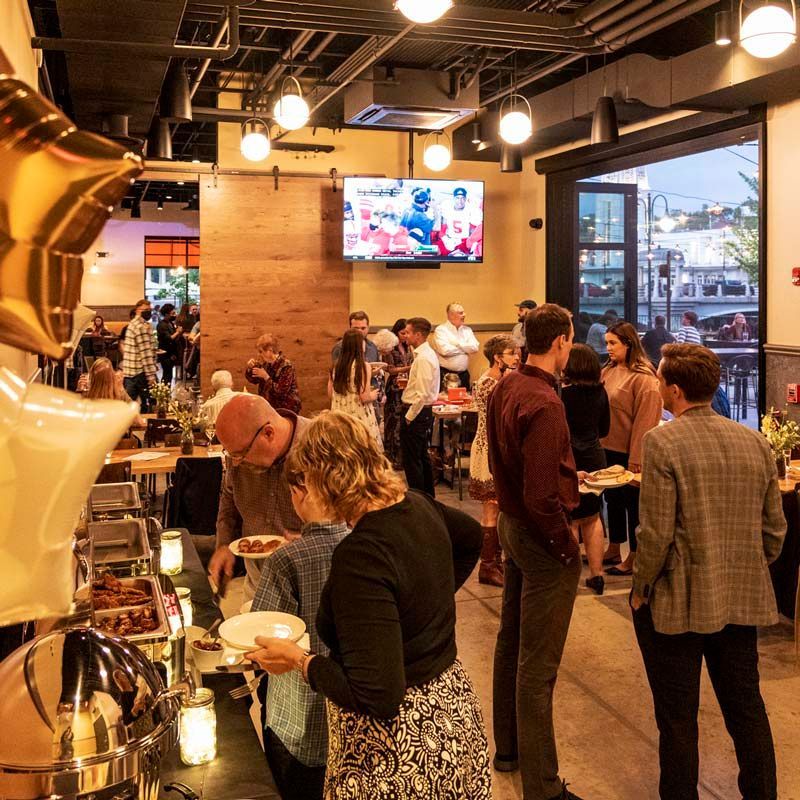 It’s where big parties feel cozy and comfortable. It’s where fancy parties are fun. With a variety of seating conditions, a private bar and dedicated bartender, a 4-tap draft menu, and your own bags set, it’s an ideal spot for up to 150 people to have a night they won’t forget.